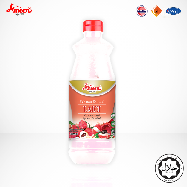 Ameen Kordial Berperisa Laici Manis dan Pekat 840ml
