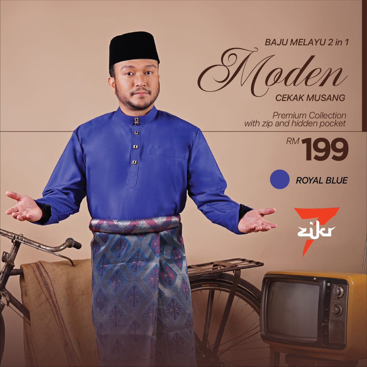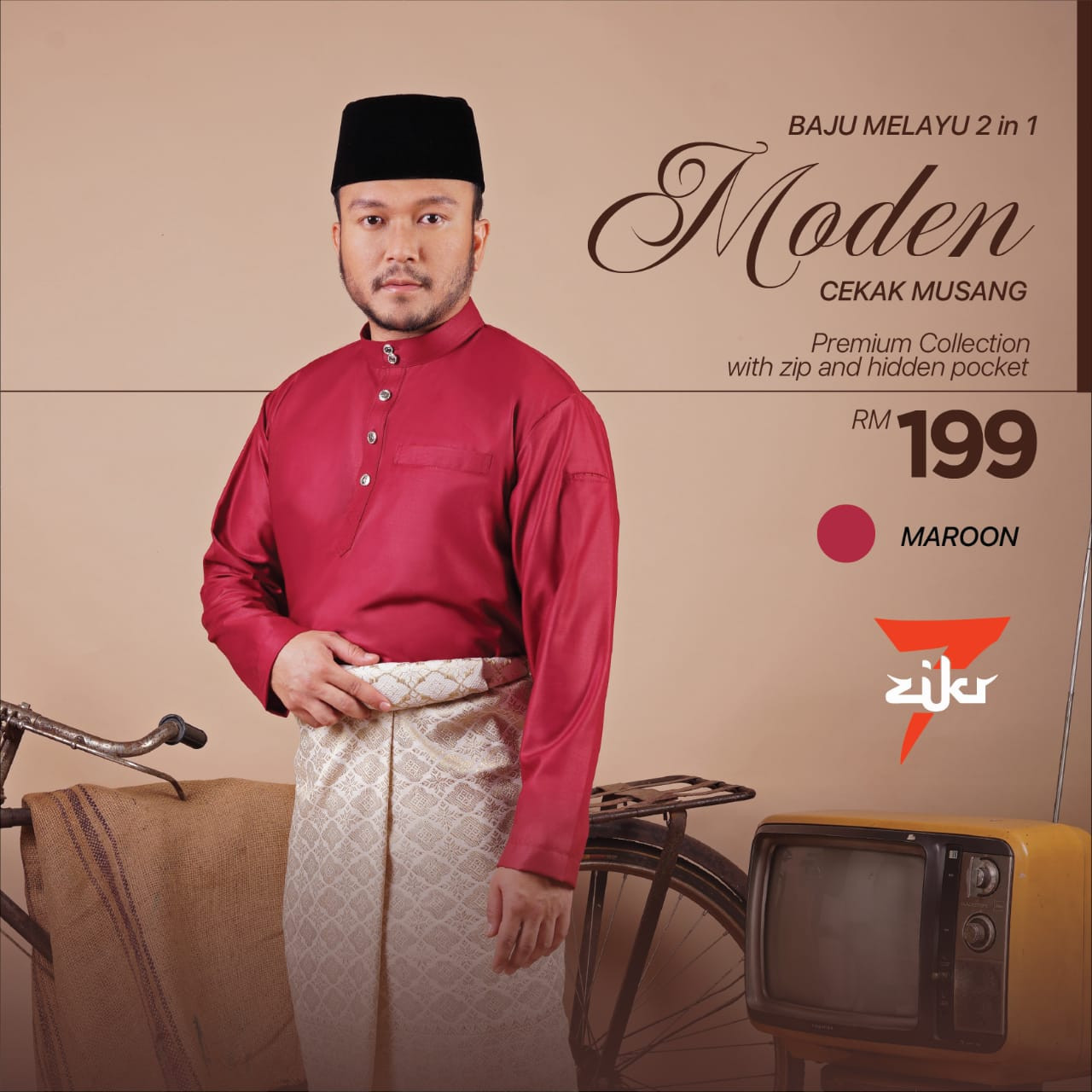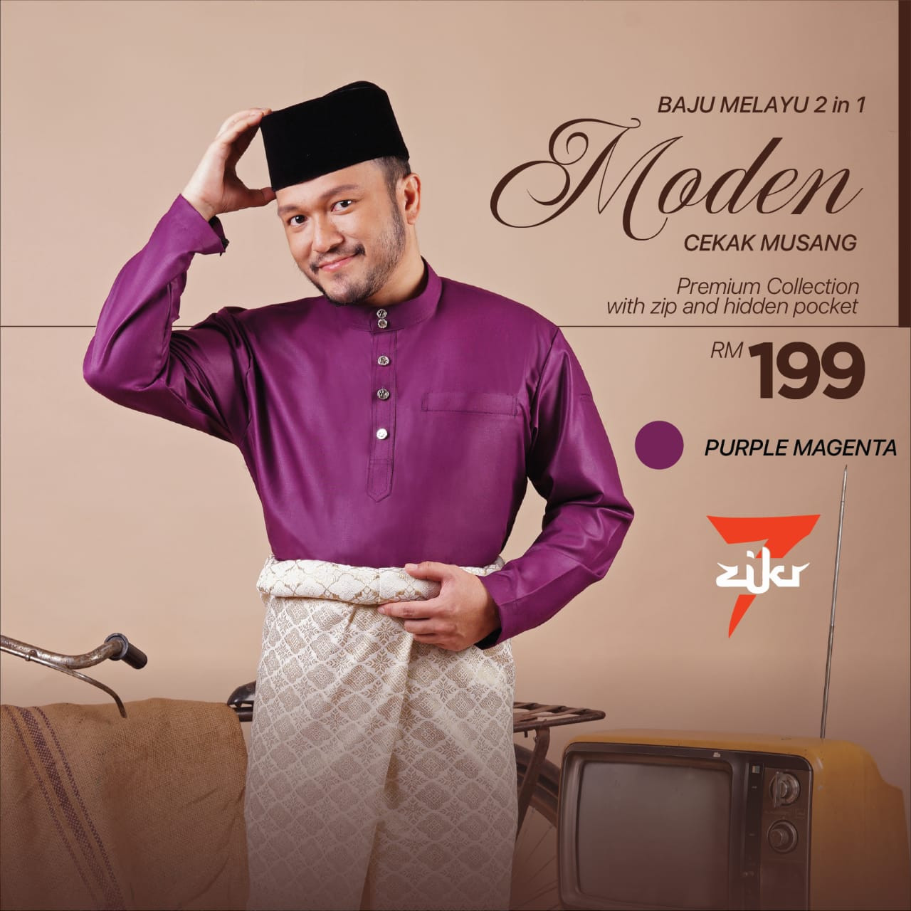Baju Melayu Moden 2 In 1, koleksi Premium 7zikr lengkap dengan poket rahsia berzip.