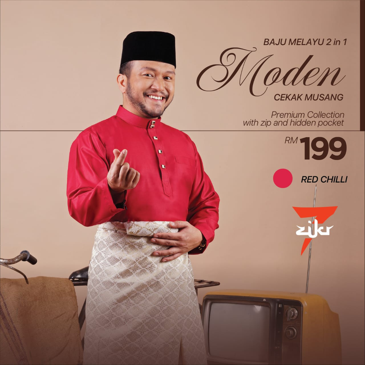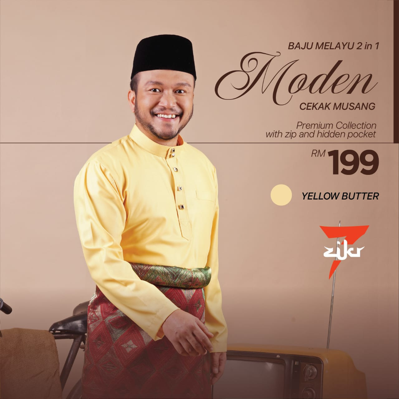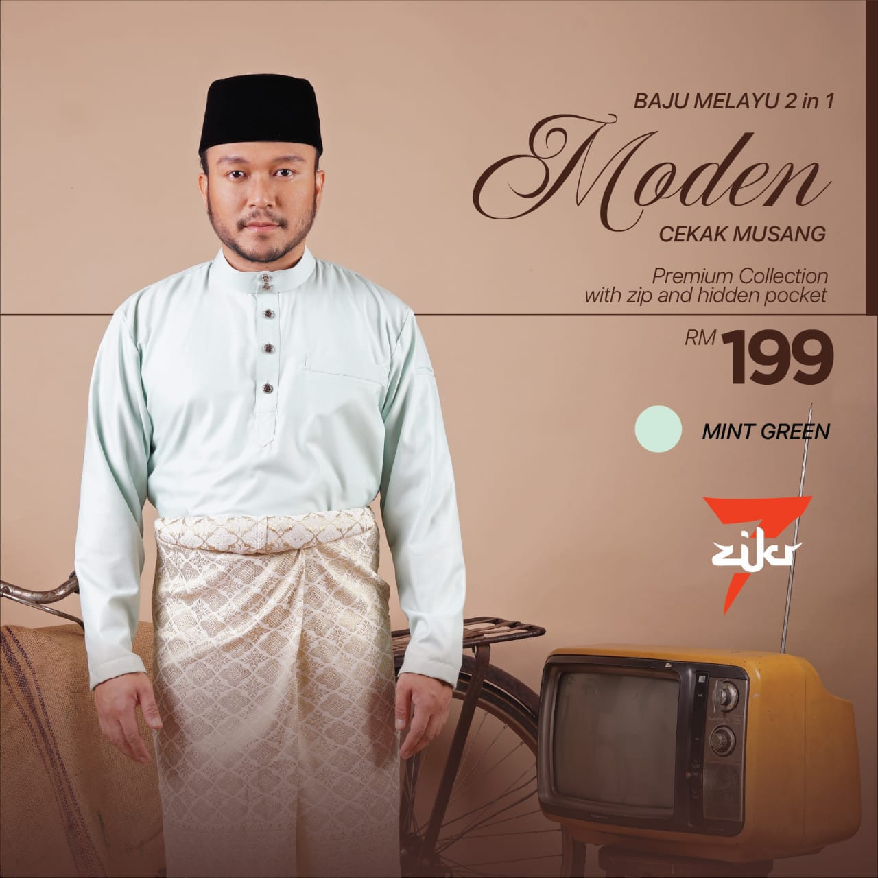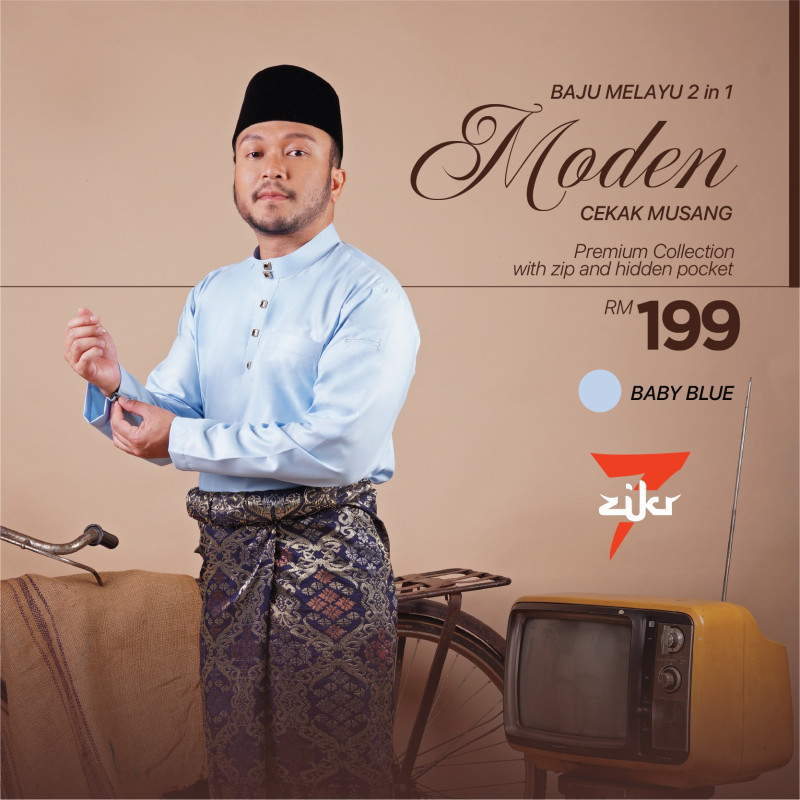 Baju Melayu Moden 2 In 1, koleksi Premium 7zikr lengkap dengan poket rahsia berzip.