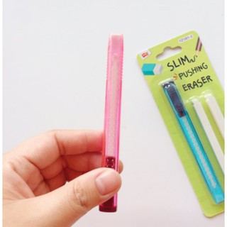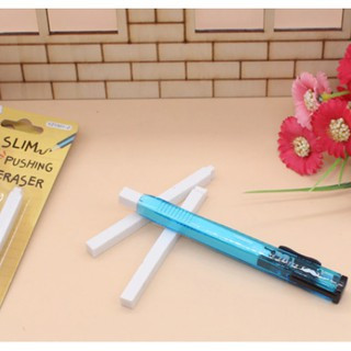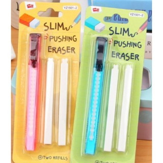 SLIM PUSHING ERASER WITH 2 REFILLS (PINK) FOR STUDENTS, KIDS, SCHOOL, OFFICE