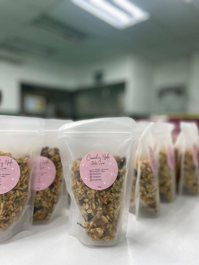 Crunchy Nola is a Granola. A healthy snacking that good for our body! Give extra energy to our body, Good for diet, Lowers blood sugar levels and etc.