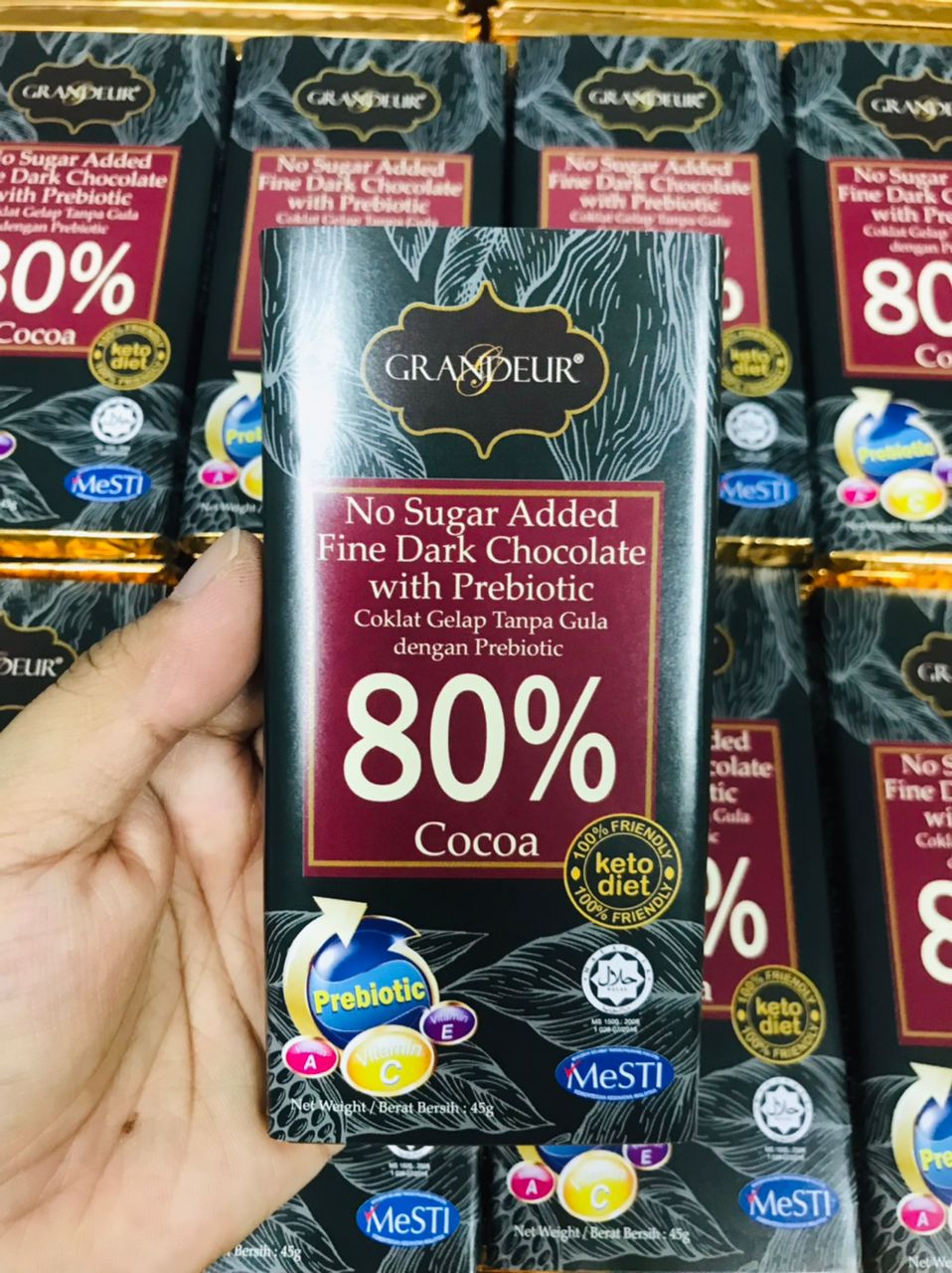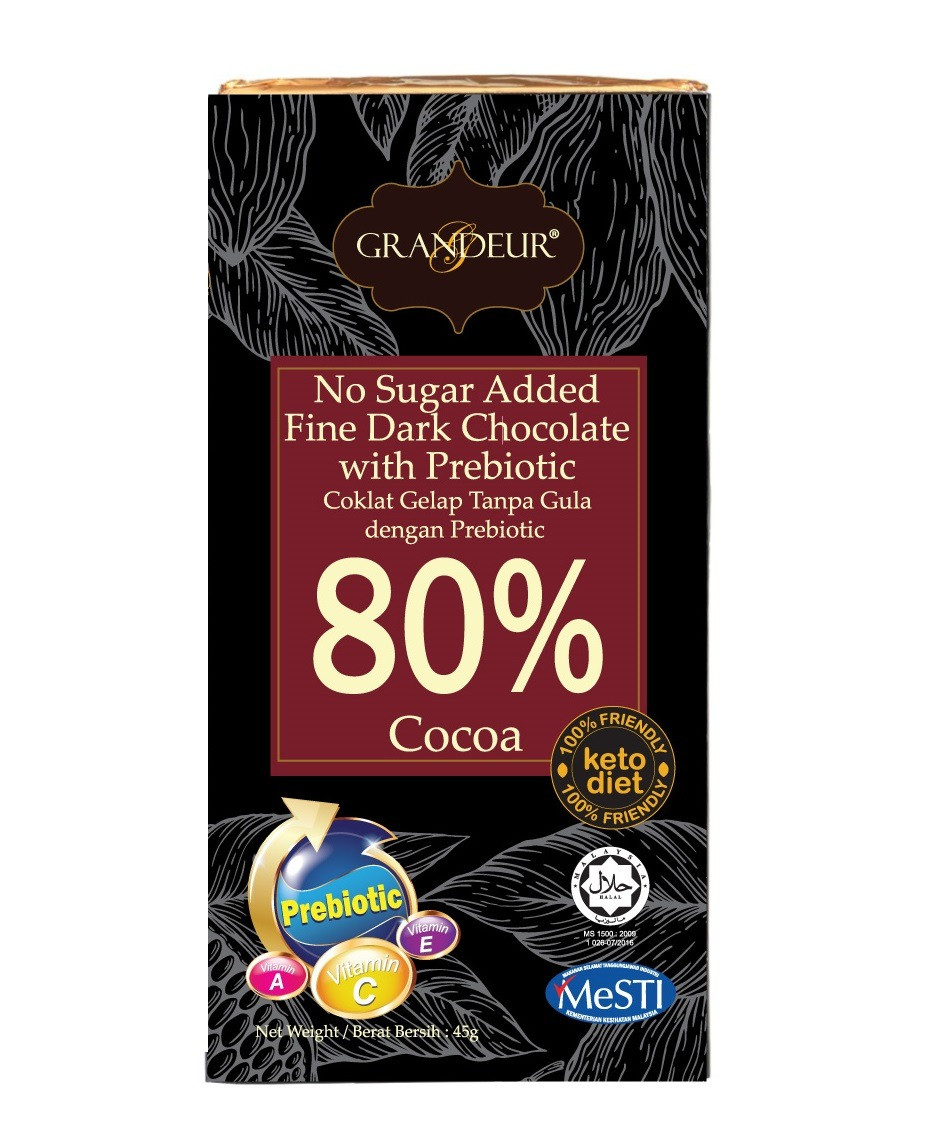 Grandeur 80% Cocoa No Sugar Added Fine Dark Chocolate with Prebiotic is keto diet friendly. This chocolate has much higher fat content compared to carbohydrates and proteins. Insufficient carbohydrates or proteins means you don't have much glucose as an energy source. Your body will use the energy stored in the form of fat and converting the fat you eat and body fat to ketones. This means that you are literally burning fat for energy!