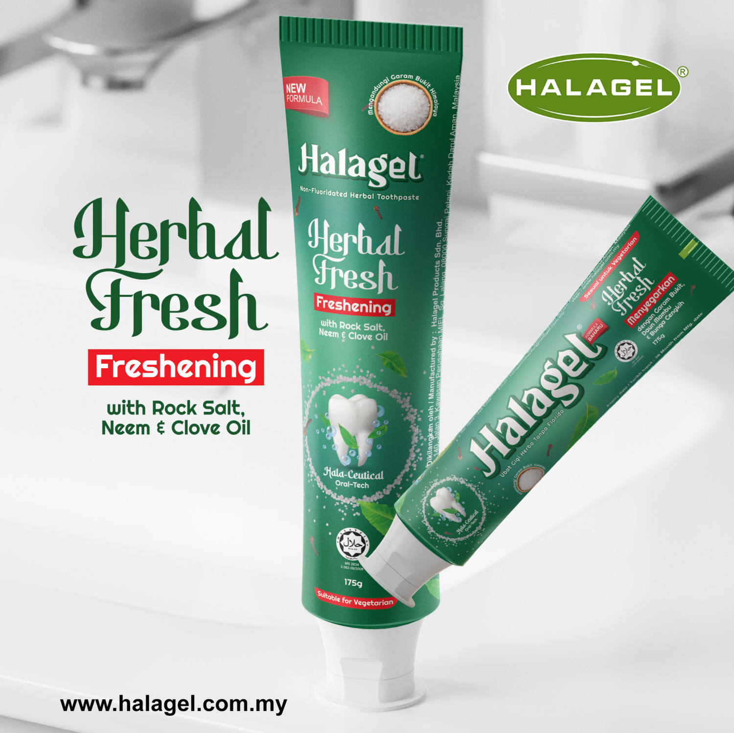 Ubat Gigi Herbal Fresh Halagel® diformulasi khas dengan kombinasi Garam Bukit Halagel® dan ramuan herba semulajadi seperti daun semambu, saintifiknya dikenali sebagai Azadirachta indica yang mempunyai sifat anti-bakteria, anti-keradangan dan anti-kariogenik.