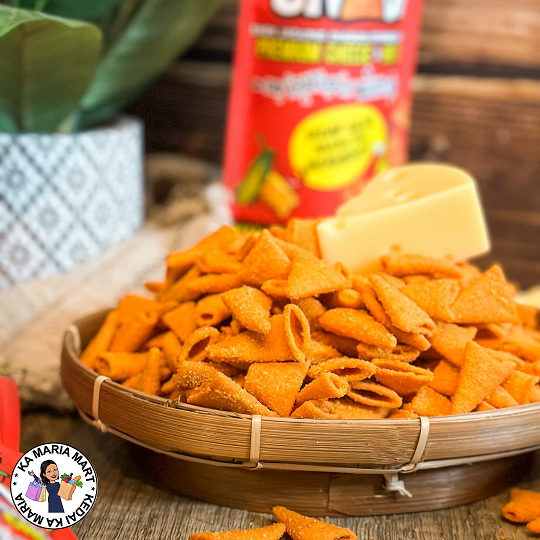 · Snek Jagung segitiga yang diadun padu dengan keju premium dan lada.