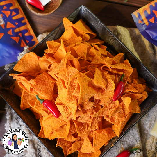 · Snek Tortilla yang diadun padu dengan keju premium dan lada.