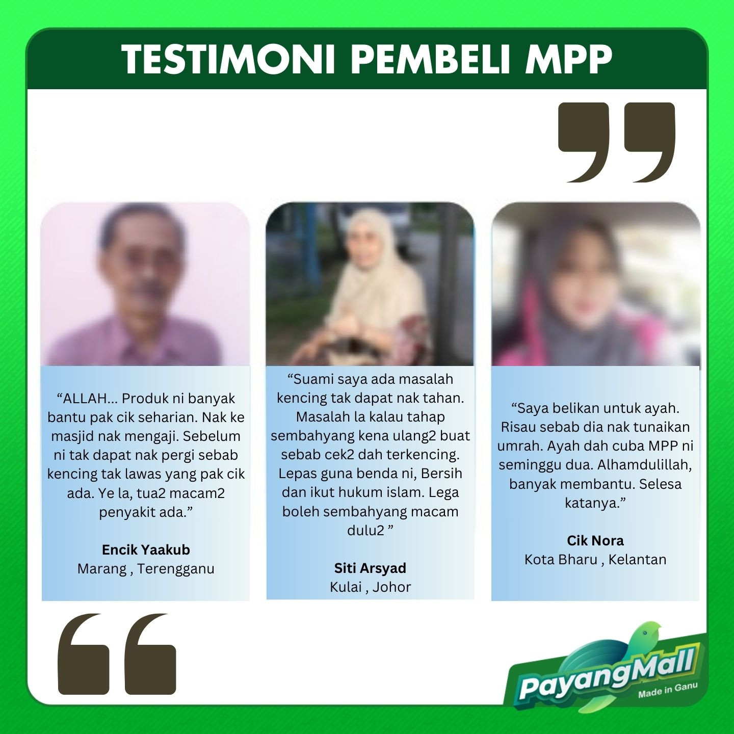 ▶ MPP diilhamkan khas untuk membantu lelaki yang mengalami masalah kencing tidak lawas untuk melaksanakan solat dengan mudah tanpa was-was, tidak sukar mengurus diri untuk solat apabila semua muslim memahami bahawa syarat sah solat itu ialah dengan berpakaian bersih tanpa najis dan dengan kaedah mengemaskan bahagian kemaluan lelaki yang mengalami masalah lelehan air kencing supaya tidak bocor.