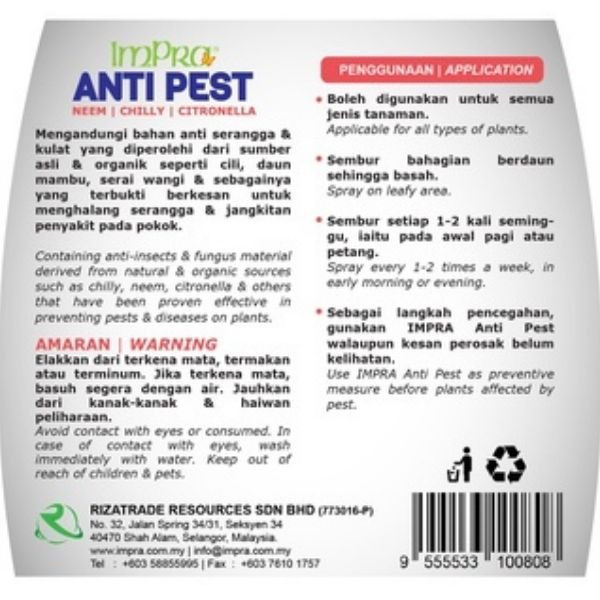 IMPRA Anti Pest (800ml) Organic Pesticide & Fungicide - Insect Repellent Racun Serangga Organik