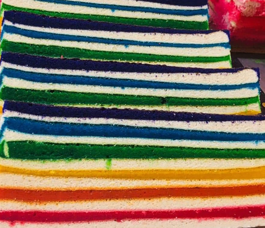 Kek lapis yang pelbagai warna menarik, lembab & enak.