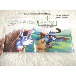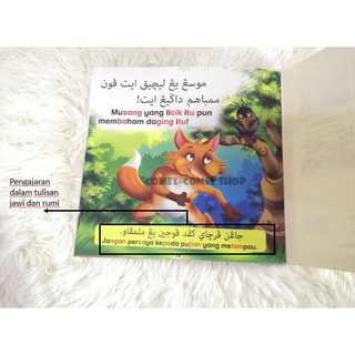 Buku cerita haiwan teladan dalam Bahasa Melayu bertulisan jawi dan rumi.