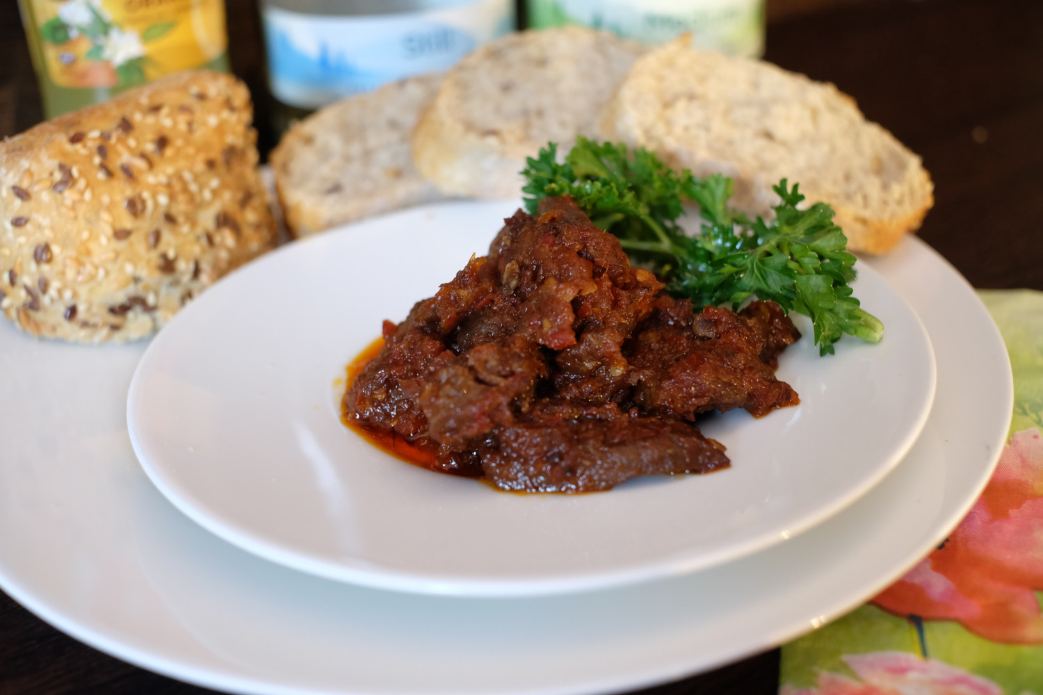 Ramuan: Daging batang pinang, Bawang Besar, Bawang Putih, Gula Perang, Serai, Sos Tiram, Sos Cili, Garam, Halia