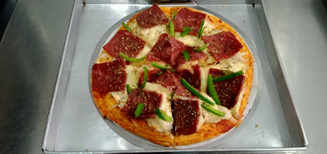 Tomato Concasse, Onion, Sauce Cheese, Mozzarella Cheese, Beef Loaf, Capsicum, Oregano & Chili Flakes.