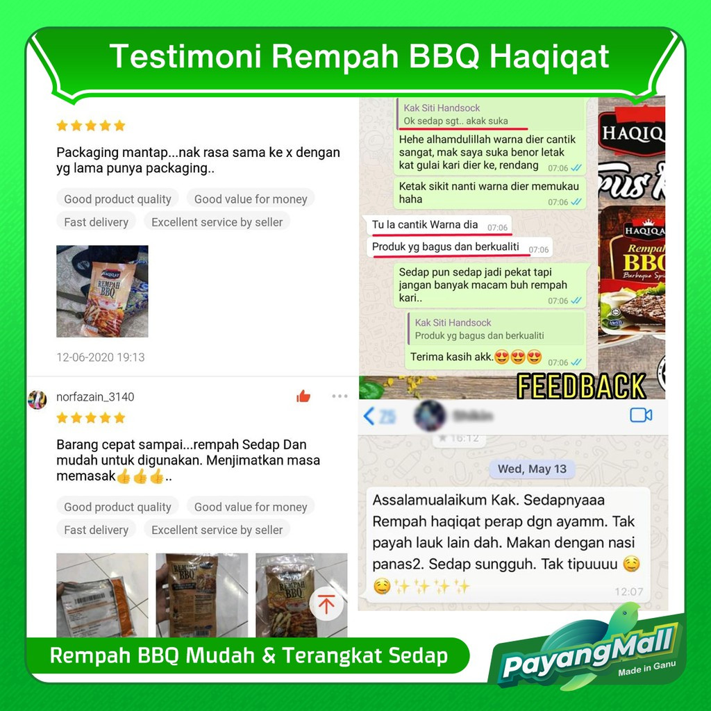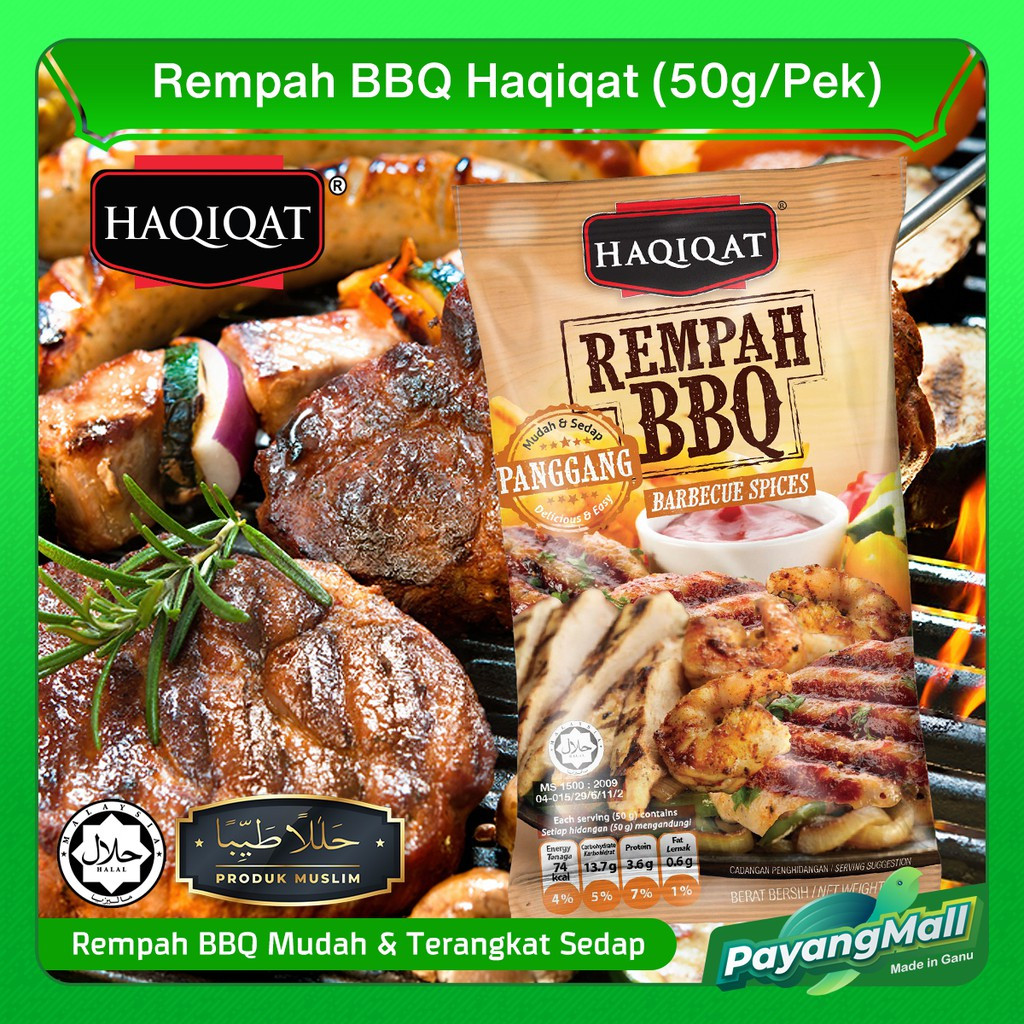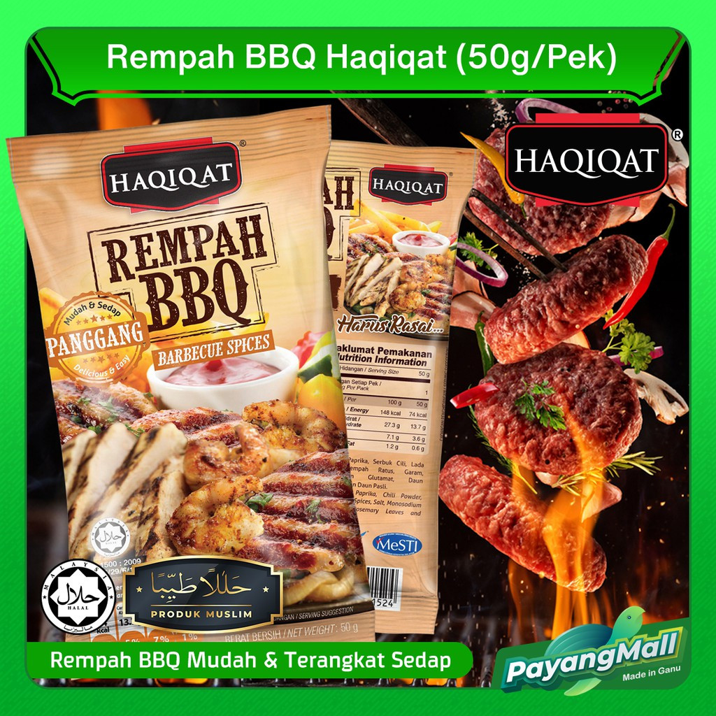 Rempah BBQ Haqiqat dari ramuan terpilih semulajadi , bukan flavouring.. ingat di hati.. dibuat oleh usahawan muslim kita yang terang lagi bersuluh halal dan suci.. halalan toyyiba. • Rempah BBQ Haqiqat rempah BBQ asli ..bukan flovouring • 100% bumiputra.. dikilangkan sendiri • Pengiktirafan sijil halal & sijil mesti • Pernah tersiar d TV Al Hijrah