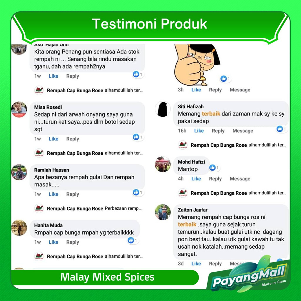 PELBAGAI JENIS MENU MASAKAN STYLE PANTAI TIMUR BOLEH DIBUAT DENGAN MENGGUNAKAN REMPAH INI ANTARANYA: • Kuah gulai ikan tongkol. • Gulai kawah pantai timur. • Kuah laksa Terengganu. • Rendang daging • Kerutuk ayam • Daging masak hitam • Acar buah • Bubur Assyura Terengganu • Soalan yang kerap ditanya ialah :