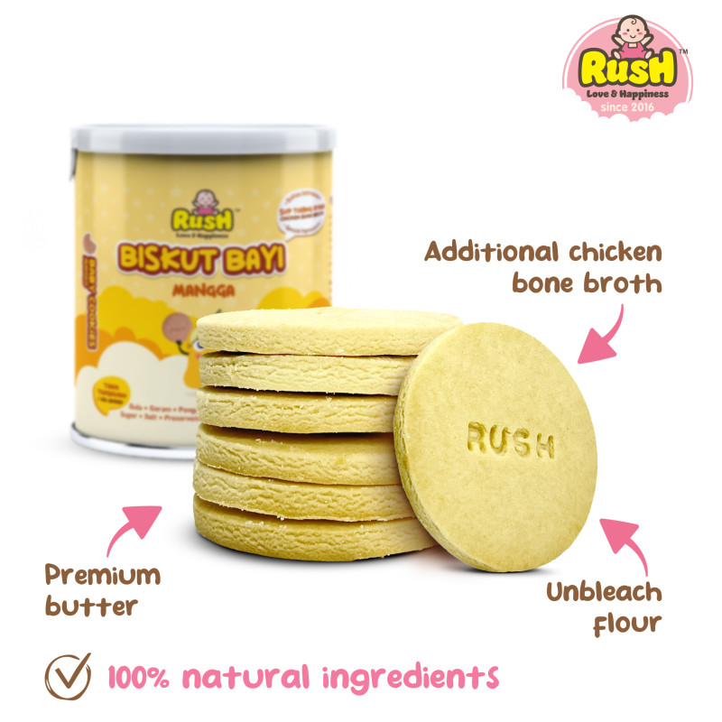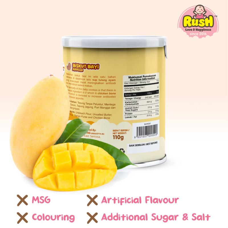 OF CHICKEN BONE BROTH * Help increase babies antibodies * Improve babies appetite * Strengthen growing bones & teeth * Supports immunity & digestion * Reduces the risk of allergies INGREDIENTS * Organic Chicken Bone Broth * Unsalted Butter * Unbleach Flour * Corn Flour * Mango Puree BONE BROTH COOKIES MANGO * Suitable for babies 7M+ * Made of Chicken Bone Broth * Ready to eat * No added sugar, salt, colouring & preservatives * Travel-friendly packaging Net Weight = 110g |