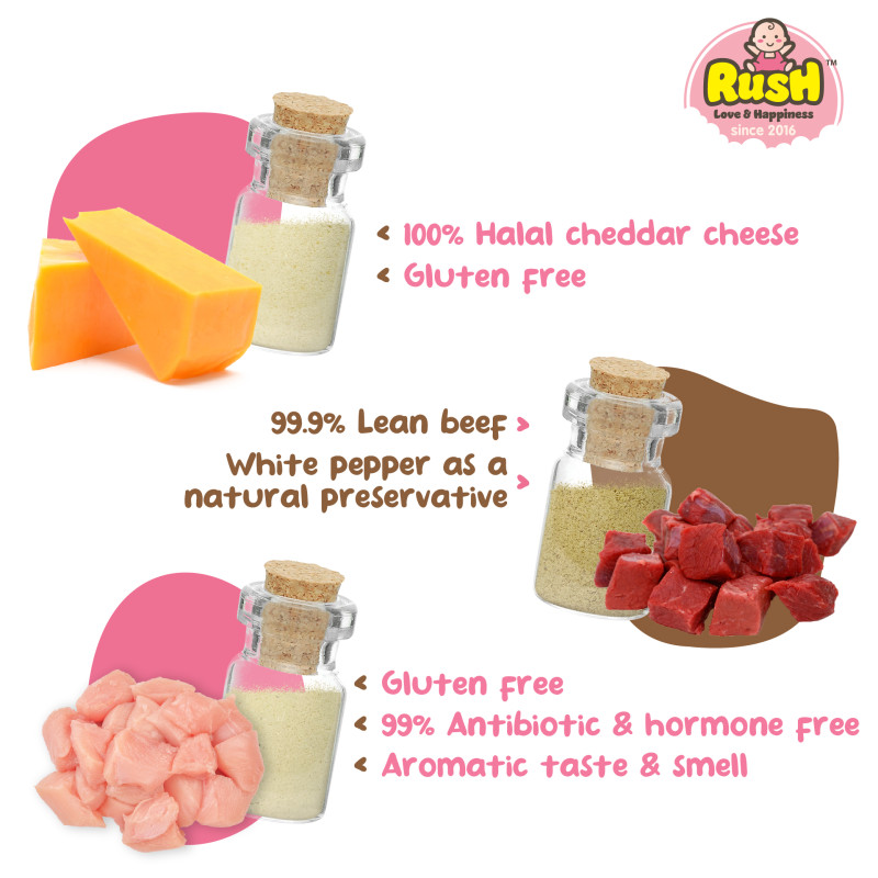 Seasoning Combo D * Suitable for Babies 8M+ * NO Added Sugar * NO Added Salt * NO Artificial Colours * NO Artificial Flavour * NO Preservatives * Easy To use Bottle * Suitable fo all dishes INGREDIENT * Cheese: 100% Cheddar Cheese * Meat: 99.9% Meat and 0.1% White Pepper * Chicken: Antibiotic Free Chicken, Olive Oil, Ginger, Garlic and White Pepper Net Weight = 56g * Cheese 18g * Meat 18g * Chicken 20g |