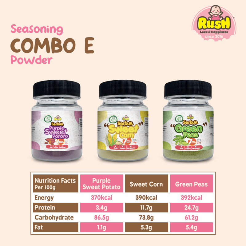 Rush Baby Seasoning Powder Combo E (Purple Sweet Potato 25g, Sweet Corn 25g, Green Peas 25g)