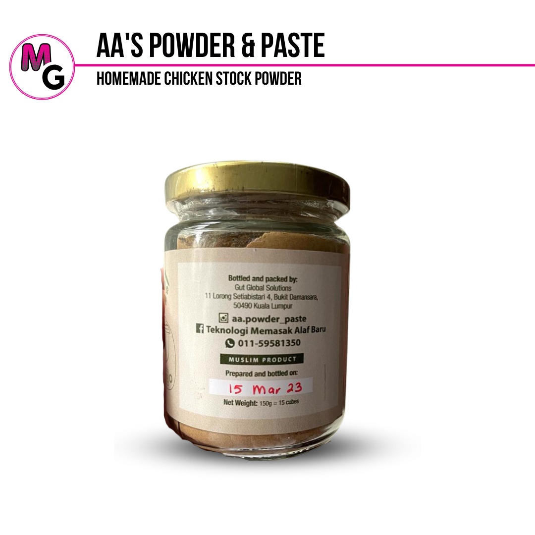 AA's serbuk stok ayam adalah SERBAGUNA, boleh digunakan untuk semua jenis masakan sebagai penyedap rasa.